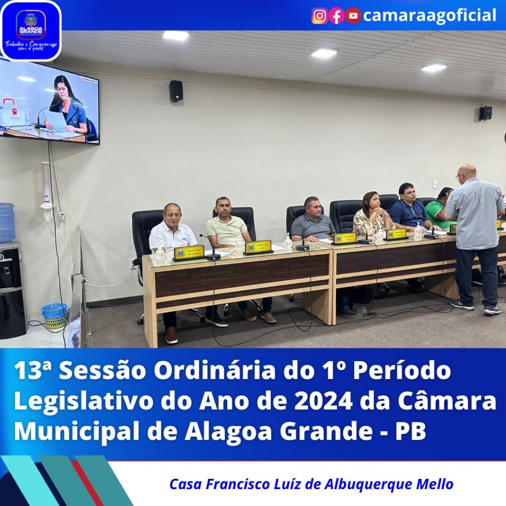 Ata da 13ª Sessão Ordinária do 1º Período Legislativo do ano de 2024 da Câmara Municipal de Alagoa Grande-Paraíba.