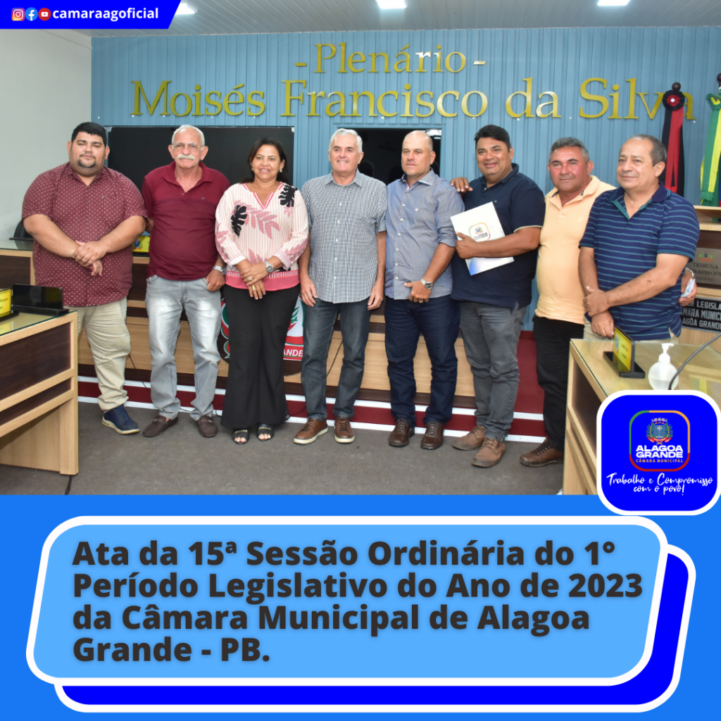 Ata da 15ª Sessão Ordinária do 1º Período Legislativo do ano de 2023 da Câmara Municipal de Alagoa Grande-Paraíba.