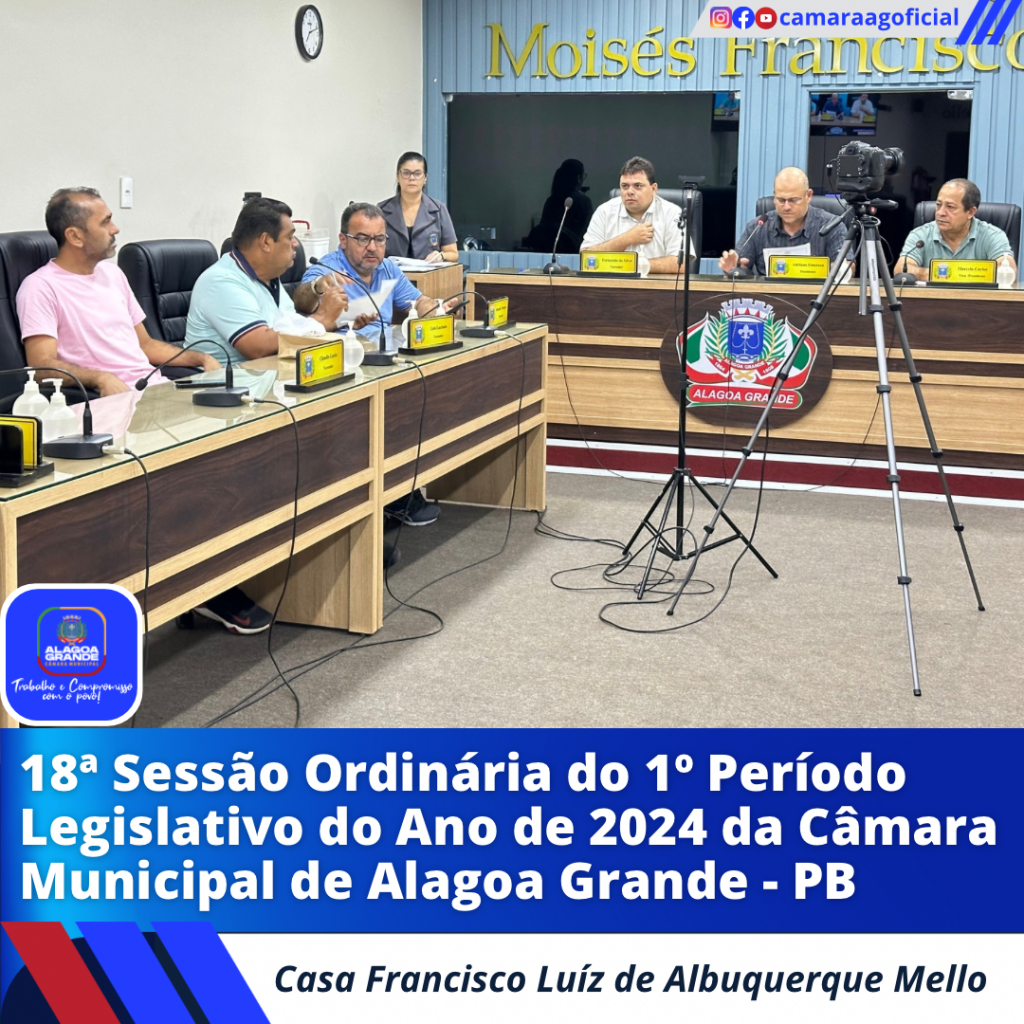 Ata da 18ª Sessão Ordinária do 1º Período Legislativo do ano de 2024 da Câmara Municipal de Alagoa Grande-Paraíba.