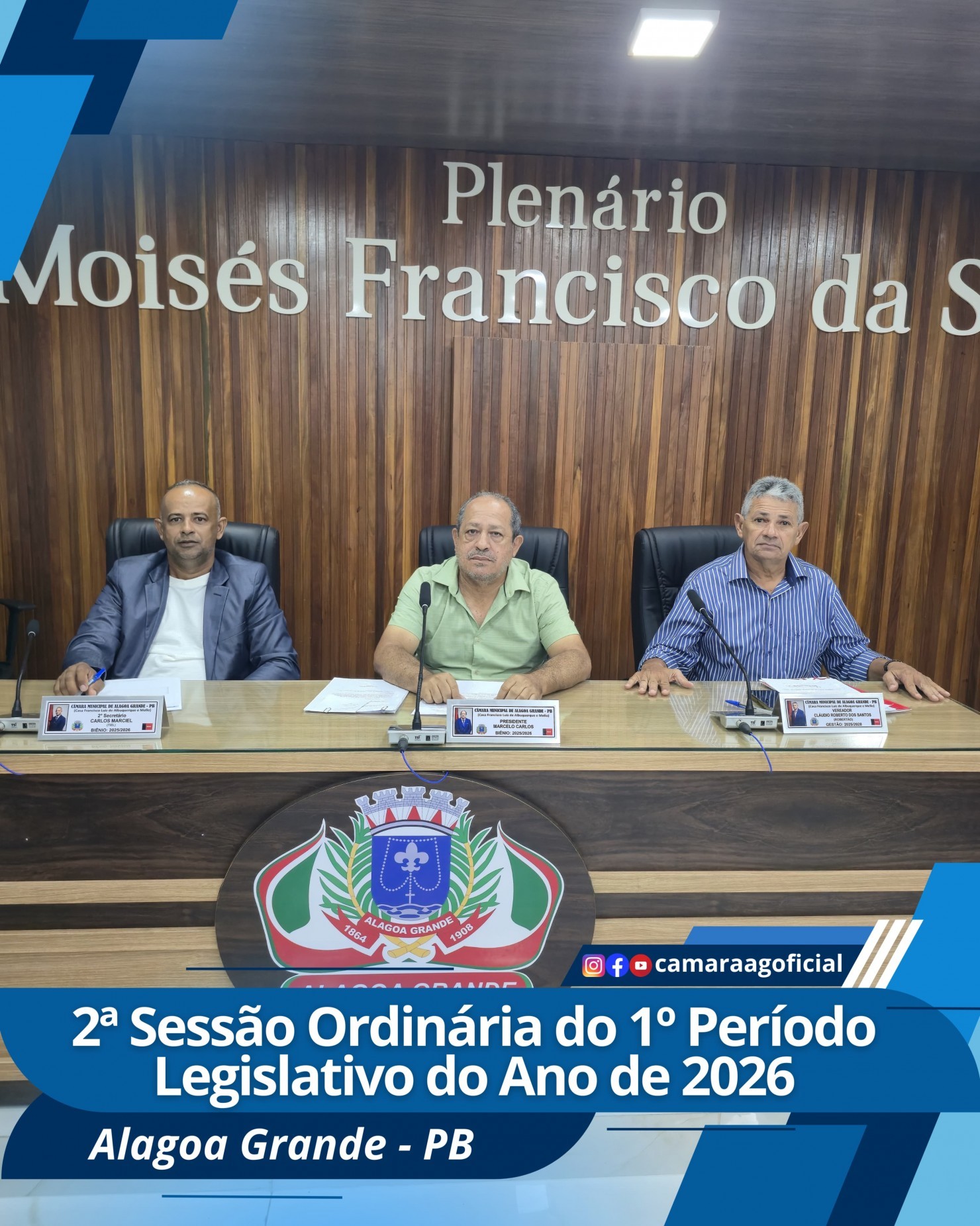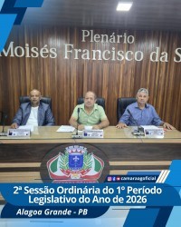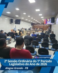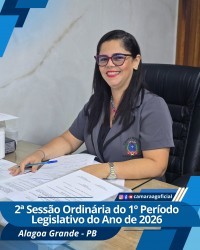Ata da 2ª Sessão Ordinária do 1º Período Legislativo do ano de 2026 da Câmara Municipal de Alagoa Grande-Paraíba. Aos doze dias do mês de fevereiro do ano de dois mil e vinte e seis, reuniu-se a Câmara Municipal de Alagoa Grande-PB, em sua sede na Rua Apolônio Zenayde, s/n. Vereadores presentes: Marcelo Carlos da Silva (Presidente), Ronaldo Marques Lins (Vice-presidente), Carlos Marciel dos Santos (2º secretário), Ernani Cavalcante Chaves Filho, Éverton Flávio Ferreira Bernardo, Aquillis Melo Silva, Joedson da Silva Coutinho, Cláudio Roberto dos Santos, Luís Lucindo da Silva. Ausentes: Cláudio Lúcio Barbosa (1º secretário) e Jocélio Rodrigues da Silva (ambos tiveram as faltas justificadas). Às 19h30 o Presidente Marcelo declarou aberta a sessão e autorizou a leitura da ata anterior, que não foi apreciada e aprovada por todos os presentes. O vereador Cláudio Roberto (Robertão) foi convidado para ocupar o lugar de 1º secretário na mesa diretora, em virtude da falta do titular. Foi lido em expediente: Ofício nº 01/2026 da Associação de Pessoas com Deficiência e Autismo de Alagoa Grande, solicitando espaço da Câmara para uma reunião no próximo dia 06 de março. Foram apresentadas as seguintes matérias: Pelo Vereador Aquillis, Moção de Aplausos ao fiscal Jorge da Silva Marinho, pelos serviços prestados ao nosso município, Requerimentos nºs 04 e 05/2026, solicitando a criação da Secretaria Municipal de Turismo e políticas públicas voltadas às pessoas com fibromialgia no município, respectivamente. Pelo Vereador Joedson (Zé do Povo), Requerimentos nºs 06 e 07/2026, solicitando o balancete com os gastos do Gabinete do Prefeito, referente ao ano de 2025 e informações sobre o valor da obra do parque linear, respectivamente. Pelo vereador Cláudio Roberto (Robertão), Projeto de Decreto Legislativo nº 03/2026, concedendo a Comenda Jackson do Pandeiro, ao artista José Felipe da Silva Filho (conhecido no meio artístico por Felipe Brasil). Pela Comissão Permanente de Constituição e Justiça, Pareceres favoráveis ao Projeto de Lei nº 01/2026, de autoria do Vereador Everton Flávio (Tuca), que reconhece a Associação dos Trabalhadores Rurais da Comunidade de Gavião de utilidade pública, e aos Projetos de Decretos Legislativos nºs 01 e 02/2026, o primeiro de autoria do Vereador Luís Lucindo, que concede Título de Cidadania Alagoagrandese ao professor Adelio Lúcio Sobral de Andrade, e o segundo de autoria do Vereador Marcelo, subscrito pelos Vereadores: Ronaldo, Cláudio Lúcio, Cláudio Roberto e Carlos Marciel, que concede Título de Cidadania Alagoagrandese ao Senhor José Roberto Nogueira (fundador e presidente da empresa Brisanet, uma das principais operadoras de Internet do país), respectivamente. Pelo Vereador Ronaldo, Requerimento nº 08/2026, solicitando construção de redutores de velocidade nas proximidades do Conjunto Edmar Paes de Araújo, na rodovia PB-0-79. Foram apreciadas e votadas as seguintes matérias constantes na ordem do dia: Projeto de Lei nº 01/2026, autor: Éverton (Tuca). Foi apreciado pelo autor, por Ronaldo, Claúdio Roberto (Robertão) e logo após autorização plenária aprovado em duas votações por unanimidade dos presentes (8x0). Projeto de Decreto Legislativo nº 01/2026, autor: Luís Lucindo. Não foi apreciado e logo após aprovado por unanimidade. Projeto de Decreto Legislativo nº 02/2026, autor: Marcelo. Foi apreciado pelo autor e logo após aprovado por unanimidade. Requerimento nº 01/2026, autor: Luís Lucindo. Não foi apreciado e logo após aprovado por unanimidade. Requerimento nº 02/2026, autor: Cláudio Roberto (Robertão). Foi apreciado pelo autor, por Joedson e logo após aprovado por unanimidade. Requerimento nº 03/2026, autor: Marcelo. Foi apreciado pelo autor e logo após aprovado por unanimidade. No grande expediente ao usar a tribuna o vereador Joedson (Zé do Povo), solicitou ao prefeito que atenda o apelo da população e realize com urgência os serviços de pintura das faixas de pedestres, restaurando as existentes. Elogiou a Secretaria de Agricultura, pelo apoio aos agricultores, com o inicio do corte de terras, pois esta semana foram atendidos os moradores do Assentamento Margarida Maria Alves. Teceu comentários referente ao seu trabalho de assistência as pessoas que necessitam de exames e consultas médicas, ele (Zé do Povo), através do deputado Inácio Falcão, tem conseguido ajudar dezenas de famílias, que procuram a sua ajuda, porque necessitam dessas ações na área da saúde. Disse que não quer fazer da política profissão, pois é contra o político exercer mandato por longos períodos, e conhece famílias que passam a vida ocupando cargos públicos e nunca trabalharam na iniciativa privada. Teceu comentários sobre a fiscalização da Polícia Militar no trânsito de Alagoa Grande, disse que sempre a Polícia terá o seu apoio e encerrou as palavras agradecendo a atenção de todos. O vereador Aquillis no uso da palavra disse que o prefeito em exercício João Montenegro anunciou hoje, que amanhã terá inicio o asfalto da rua professor Antonio Benvindo (Rua da Glória). Teceu elogios pelos serviços de restauração das estradas vicinais que dão acesso às comunidades rurais, como também o inicio do programa de corte de terra, na zona rural do nosso município para atender os agricultores. Falou dos serviços da secretaria de infraestrutura, que está realizando a limpeza de galerias e bueiros para prevenir alagamentos no período de chuvas e encerrou as palavras. O vereador Ronaldo no uso da palavra cumprimentou a todos e teceu comentários das chuvas que caíram recentemente, que trouxe alegrias para os agricultores, que tiveram os seus reservatórios cheios, no entanto trouxe alguns transtornos. Teceu elogios ao vice-prefeito, que está exercendo interinamente o cargo de prefeito, pois após as fortes chuvas do final de semana ele reuniu os seus auxi