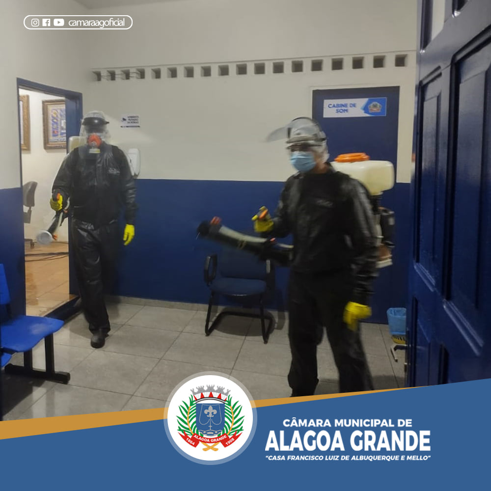 As equipes da Secretaria de Saúde continuam realizando a desinfecção em diversos pontos da cidade. Nesta quinta-feira, 06/05, foram higienizadas as áreas da Câmara Municipal de Alagoa Grande, por possuir um fluxo intenso de pessoas.