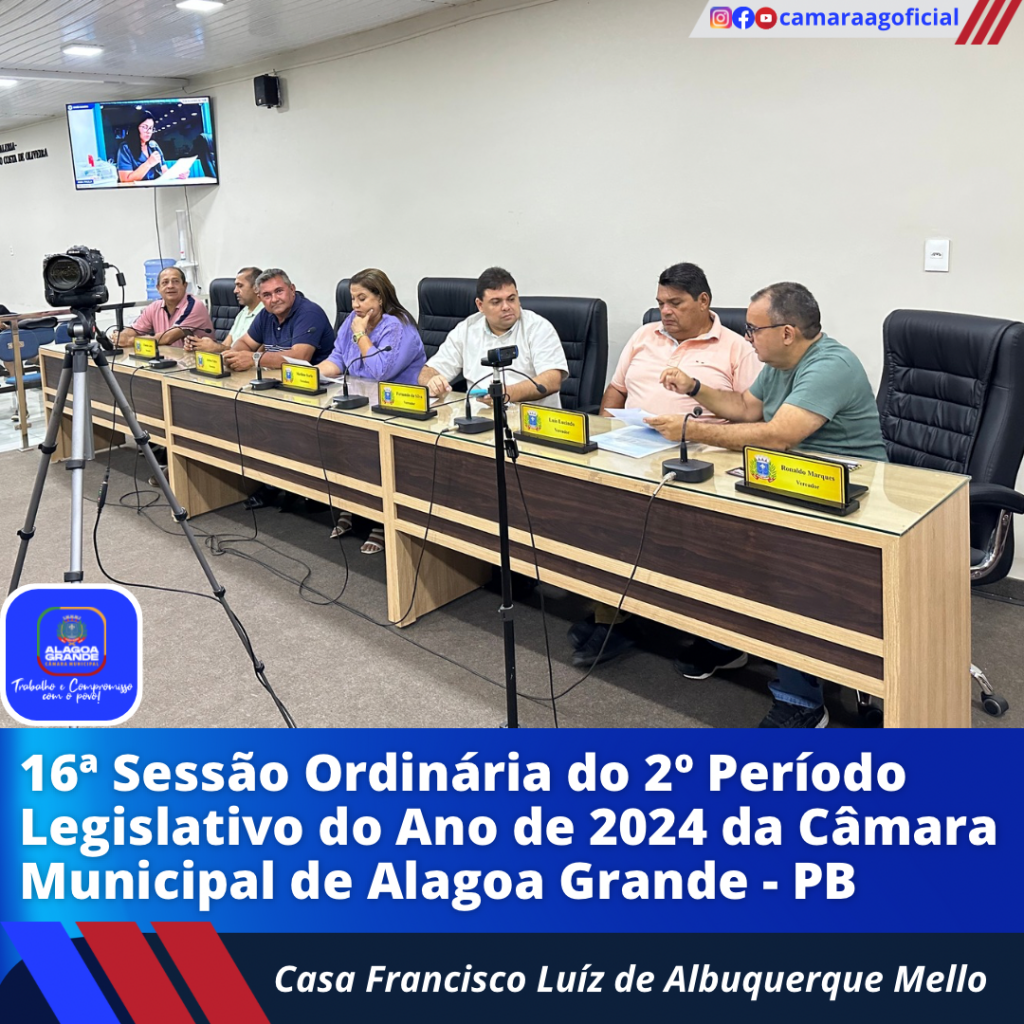 Ata da 16ª Sessão Ordinária do 2º Período Legislativo do ano de 2024 da Câmara Municipal de Alagoa Grande-Paraíba.