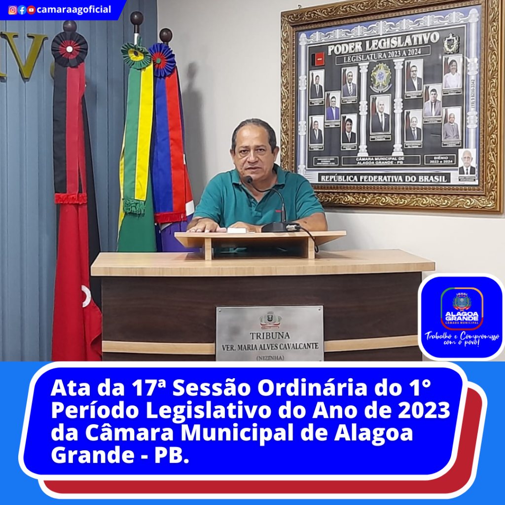Ata da 17ª Sessão Ordinária do 1º Período Legislativo do ano de 2023 da Câmara Municipal de Alagoa Grande-Paraíba.