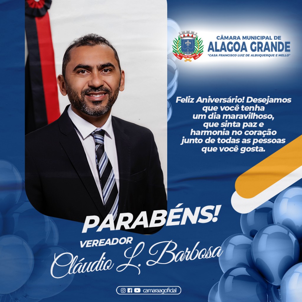 Receba os Parabéns, de todos os que fazem parte da Câmara Municipal de Alagoa Grande!!!