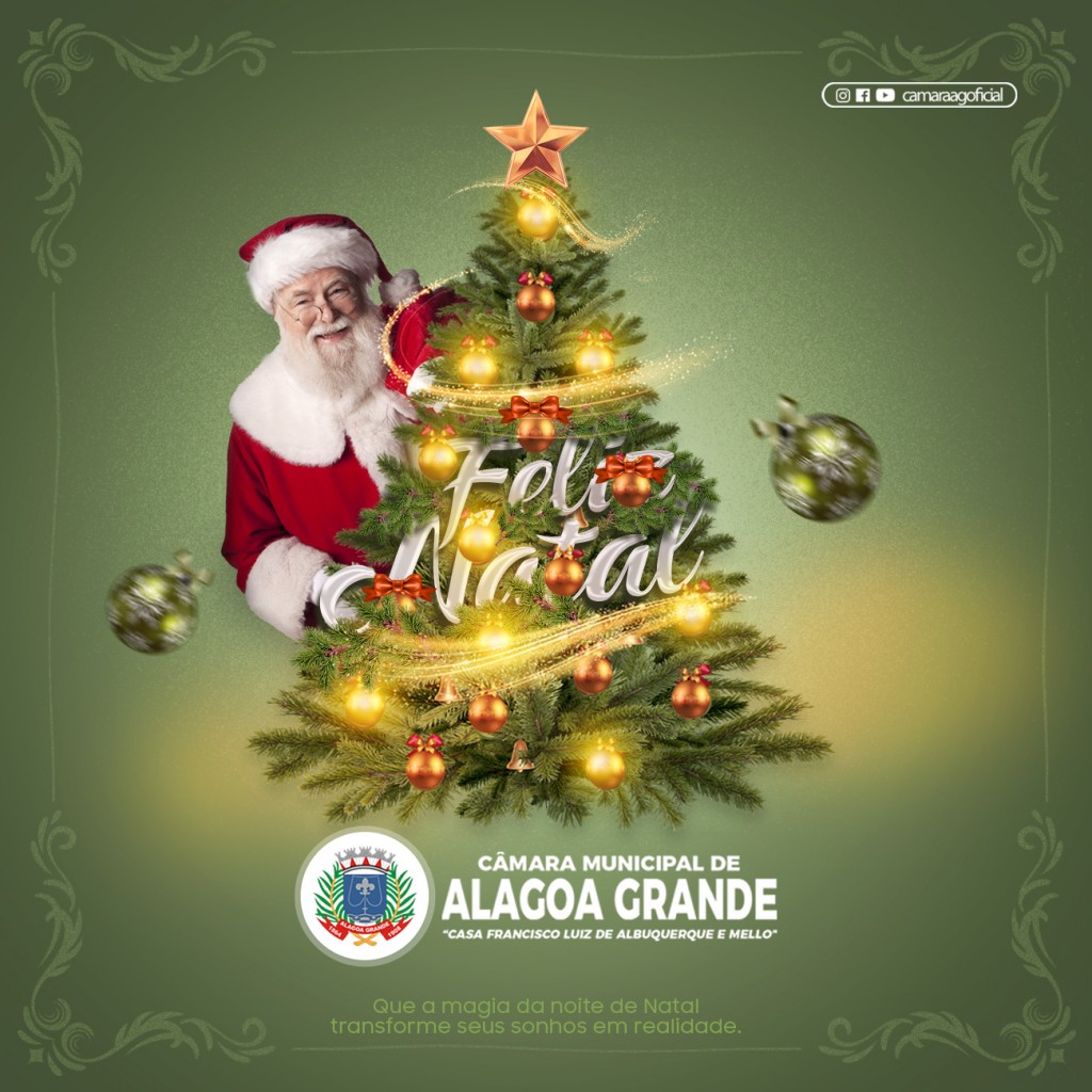 Natal é tempo de comemorar a vida, espalhar o amor e semear a esperança. De todos nós que fazemos a Câmara Municipal de Alagoa Grande, desejamos um FELIZ NATAL!!!