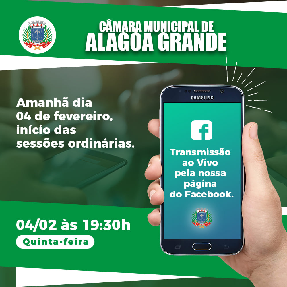 Amanhã, dia 04 de fevereiro, daremos início as Sessões Ordinárias desta Casa Legislativa. Acompanhe a Live pela nossa página do Facebook, a partir das 19:30h.