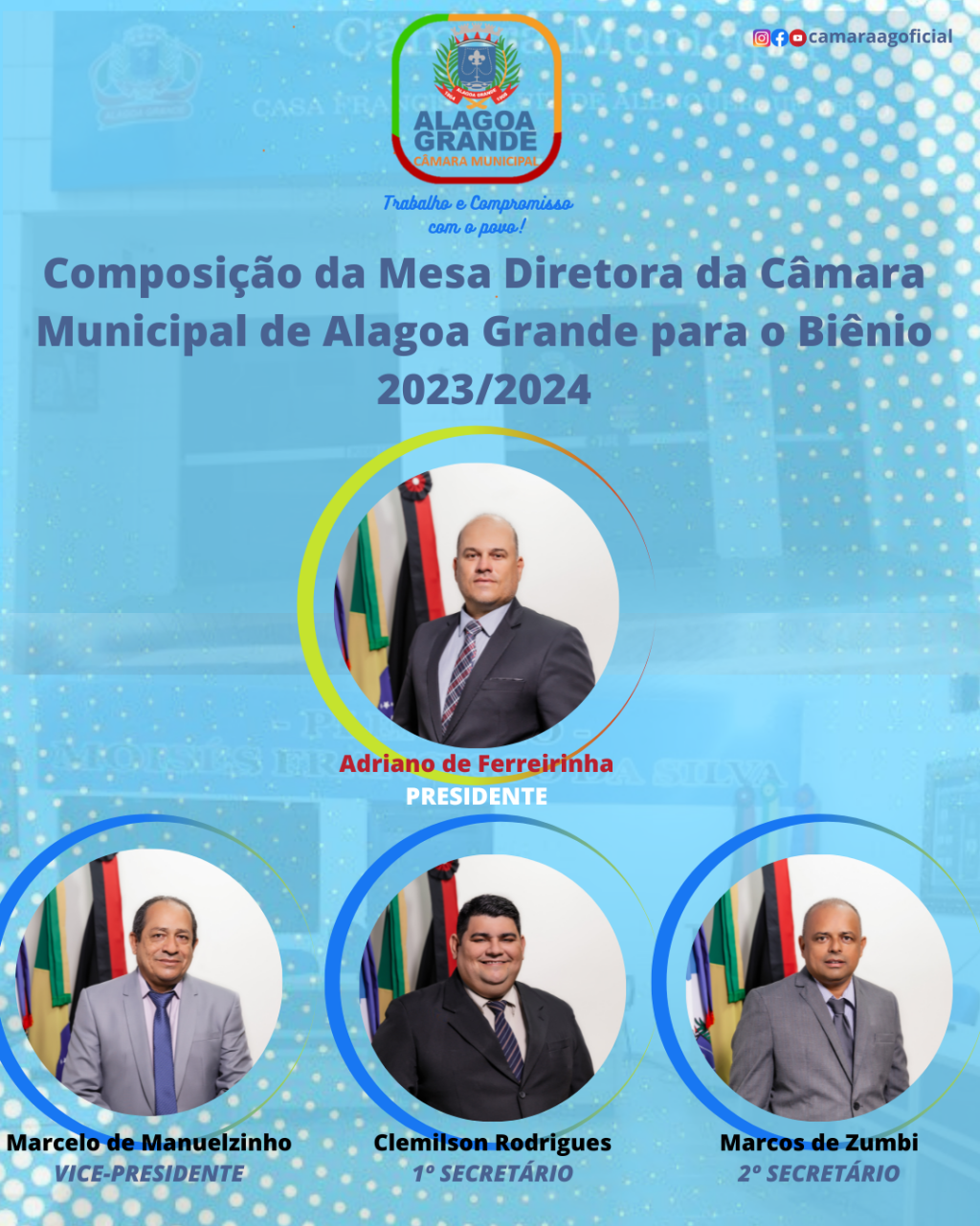 Mesa Diretora da Câmara Municipal de Alagoa Grande para o Biênio 2023/2024 que ficou composta da seguinte forma: