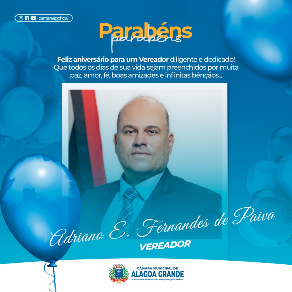 Que todos os dias de sua vida sejam preenchidos por muita paz, amor, fé, boas amizades e infinitas bênçãos... Receba os parabéns de todos que fazem parte da Câmara Municipal de Alagoa Grande.