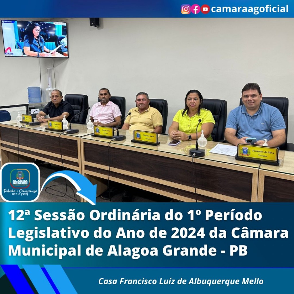 Ata da 12ª Sessão Ordinária do 1º Período Legislativo do ano de 2024 da Câmara Municipal de Alagoa Grande-Paraíba.
